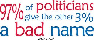 I’m serious! It is not politics that I have a problem with it is politicians. I realize that it is virtually impossible to separate the political process from the individual politician and therein lies the problem. Politicians, for virtually all of recorded history, have demonstrated their propensity for ‘untrustworthiness’ and their lack of resolve to be ‘trustworthy.’